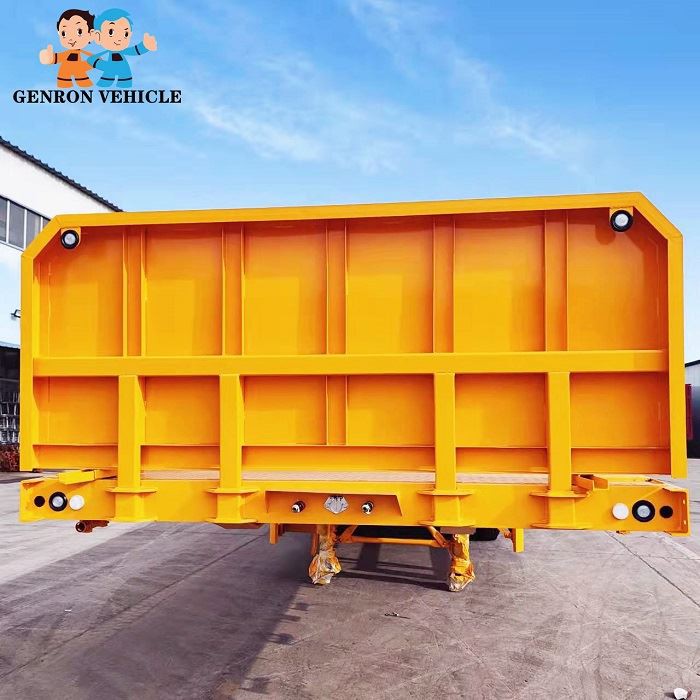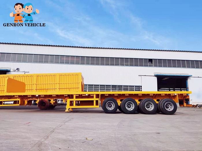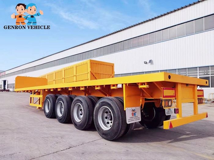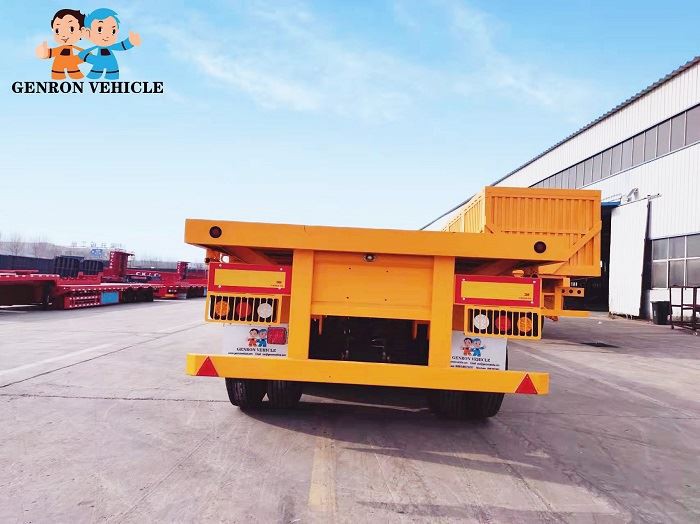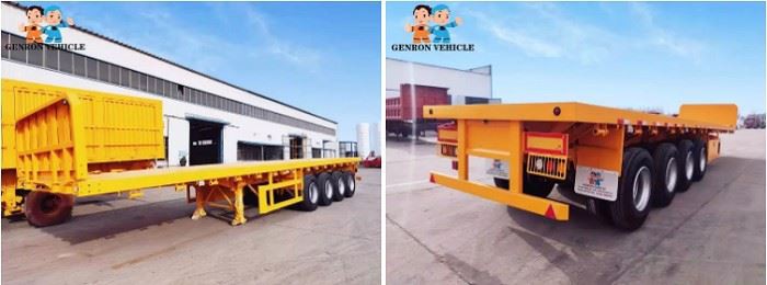 As shown in the pictures, the obverse and reverse of flatbed semi trailers are stacked together.
