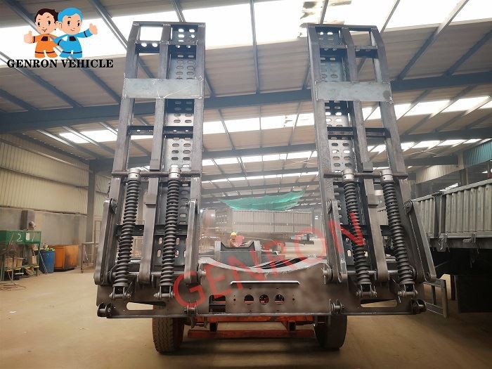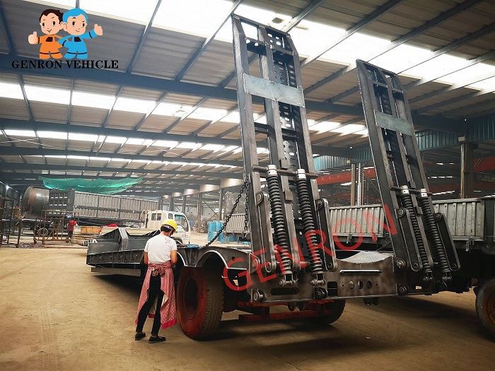 Low bed semi trailers are suitable for transporting heavy-duty vehicles such as tractors, special vehicles, rail vehicles, mining machinery, forestry machinery, and other heavy goods. This kind of trailer has a low center of gravity, which provides greater ability to transport super-tall loads and to pass through height limit roads. Genron low bed semi trailers are very strong and with the strength and durability to meet the transport needs. We use high strength steel material for the lowbed trailers, specially for the main key stress point. The parts we adopt are famous brand and good in quality , like WABCO brand, JOST brand, FUWA brand. Improve the system's reaction sensitivity and stability, More Safe.