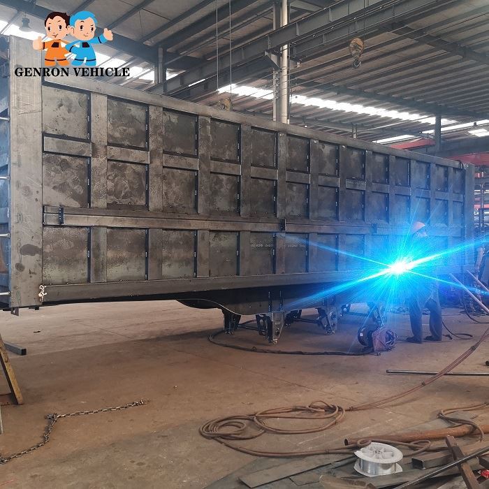 Dump semi trailer is suitable for coal, ore, construction materials and other bulk and scattered goods transport. 1. The carriage adopts roll-over and roll-over self-unloading mode, which can effectively transport bulk and scattered goods by loading and unloading machine. 2. The frame and rail are welded with high quality manganese plate. There are two kinds of dustpan and rectangle in the container. It has high strength, strong lifting force, good stiffness, good toughness, strong carrying capacity and no permanent deformation. 3. Excellent technology: the main components are processed by advanced equipment, and the longitudinal beam is welded by automatic submerged arc welding. The precise assembly of wheel shaft and steel leaf spring is carried out by the assembly machine.